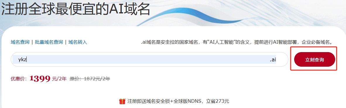 • 点击显示【可注册】的.mc域名,点击【马上注册】